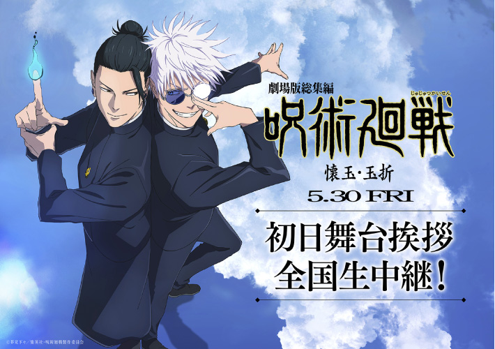5月30日(金)『劇場版総集編 呪術廻戦 懐玉・玉折』初日舞台挨拶の模様をOSシネマズにて生中継いたします。豪華声優陣による舞台挨拶をお見逃しなく!