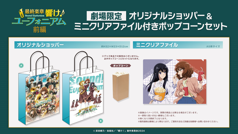 🎺 特典はミニクリアファイル! ✨ご鑑賞のお供にぜひお買い求めください! 🍿🎬発売日時 📅4月24日(金) 劇場オープン時から ☀️販売劇場 📍OSシネマズ神戸ハーバーランド 🌊価格 💰1,400円(税込)ポップコーンMサイズ付き! 🍿⚠️ ご注意数量には限りがございますので、売切れの際はご容赦くださいませ。 🙇♀️💦北宇治高校吹奏楽部の、悲願の「全国大会金賞」へ向けて――。部長になった久美子の決意を感じながら、劇場でお楽しみください! 🎶🔥🎷